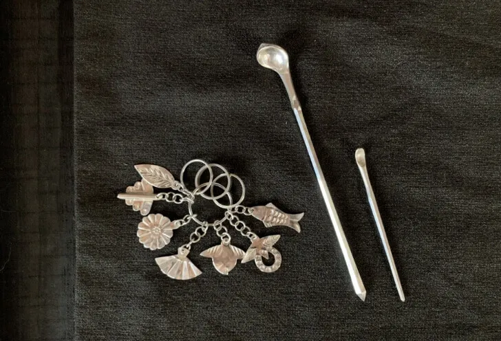 Jifa, the uniquely shaped hair-ornament for men and women, and fusa yubiwa (tassel rings), the clustered rings with seven auspicious symbols that warrior-class parents gave to their daughters when being married off wishing for their happiness, are still created in individual goldsmith’s workshops. “Even the King’s hair ornament is partly asymmetrical, and you can see the unique Ryukyuan aesthetic sense there.”