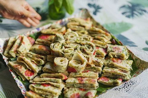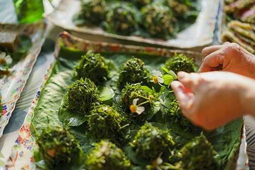 Sakuma is a herbal tea blender crafting delicious teas from the leaves and bark of the "Karaki" (Okinawan cinnamon) tree. She also runs a small restaurant only for reserved guests. Her dishes feature unique local ingredients, such as wild herbs, which she prepares simply to enhance their full flavor, whether in Hirayachi (Okinawan savory pancakes) or Tofu salads.