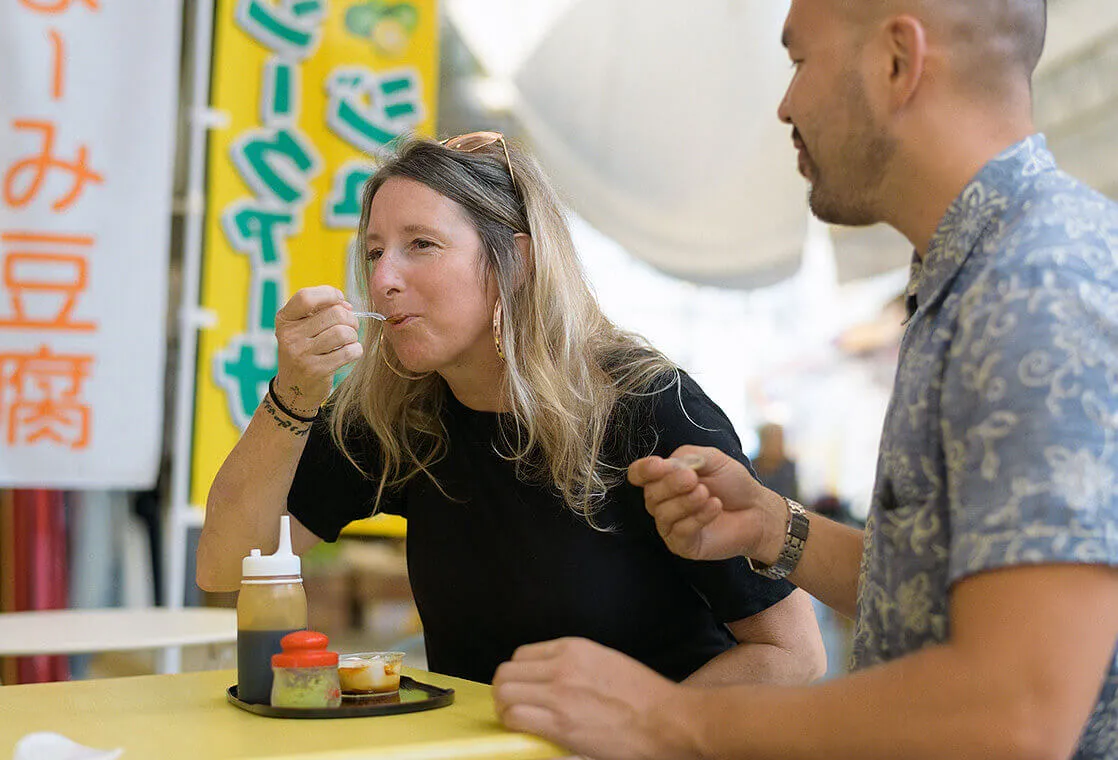 “Okinawa is an island where you can have fun interacting with local people. Especially in this area of Naha, it was a lot of fun to meet people as I walked around,” Pamela said. In other words, enjoy the Culinary Tour with your all five senses, from interacting with local people to getting to know the local food.