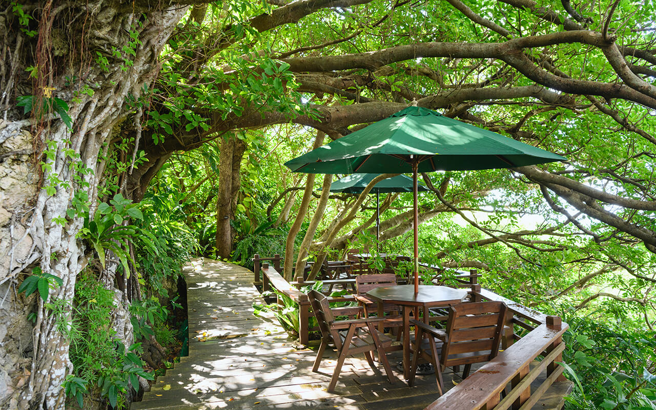 Yama no Chaya Rakusui is a secluded café hideaway located in the southern part of Okinawa Island, and surrounded by natural beauty. The café specializes mainly in Okinawan dishes prepared with generous amounts of locally grown vegetables, and using as little meat as possible. The café’s interior decor also delivers a powerful impact, with walls made of natural limestone. From the Japanese style seating area, diners can also enjoy stunning ocean views, gazing out over one of Okinawa’s finest atolls as they enjoy the delicious gourmet cuisine.