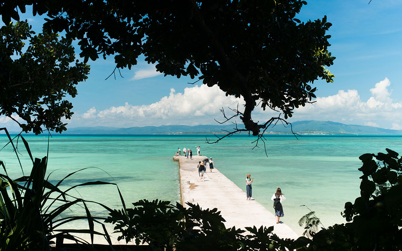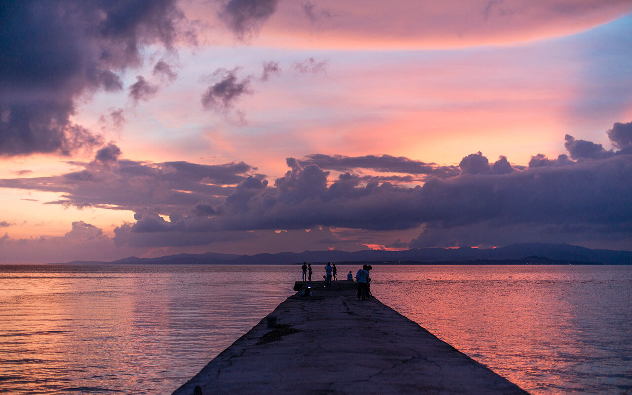 The West Pier is the perfect place for observing the evening sun. It is located on the western side of the central settlement of Taketomi Island, and is visited by many people around sunset which produces the beautiful view every second. The pier was built in 1938, and was originally used by people crossing over from Taketomi Island (which had no arable land of its own) to cultivate rice plants on other islands, such as Iriomote Island and Yubu Island. It was used as an actual working pier until around 1970, but today it has become a tourist spot.