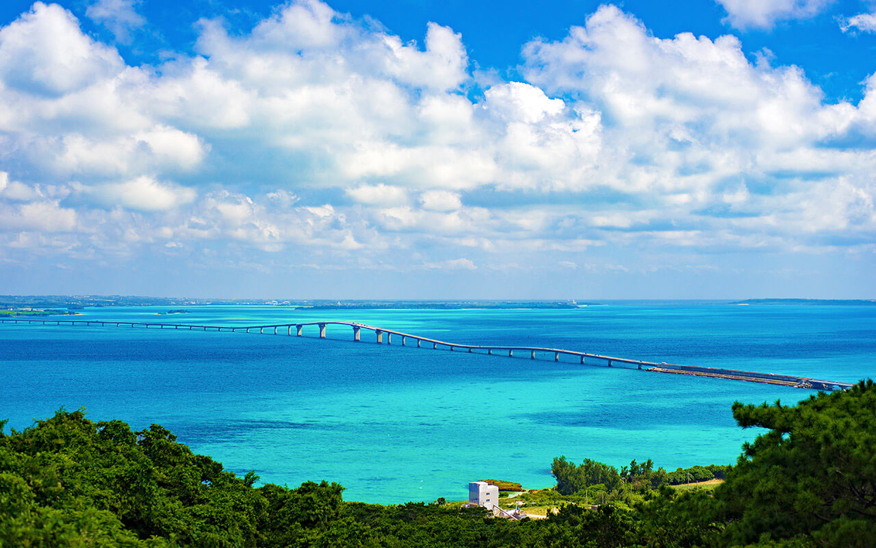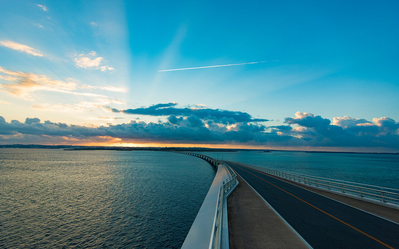 Opened in 2015, Irabu Bridge links Miyako and Irabu islands. At 3,540m it’s the longest bridge in Japan with no toll. The view from the bridge is the epitome of spectacular scenery. There is no obstacle on either side of the bridge, so you can gaze at the blue seascapes of Miyako to your heart’s content. It is also used for triathlon cycling legs.