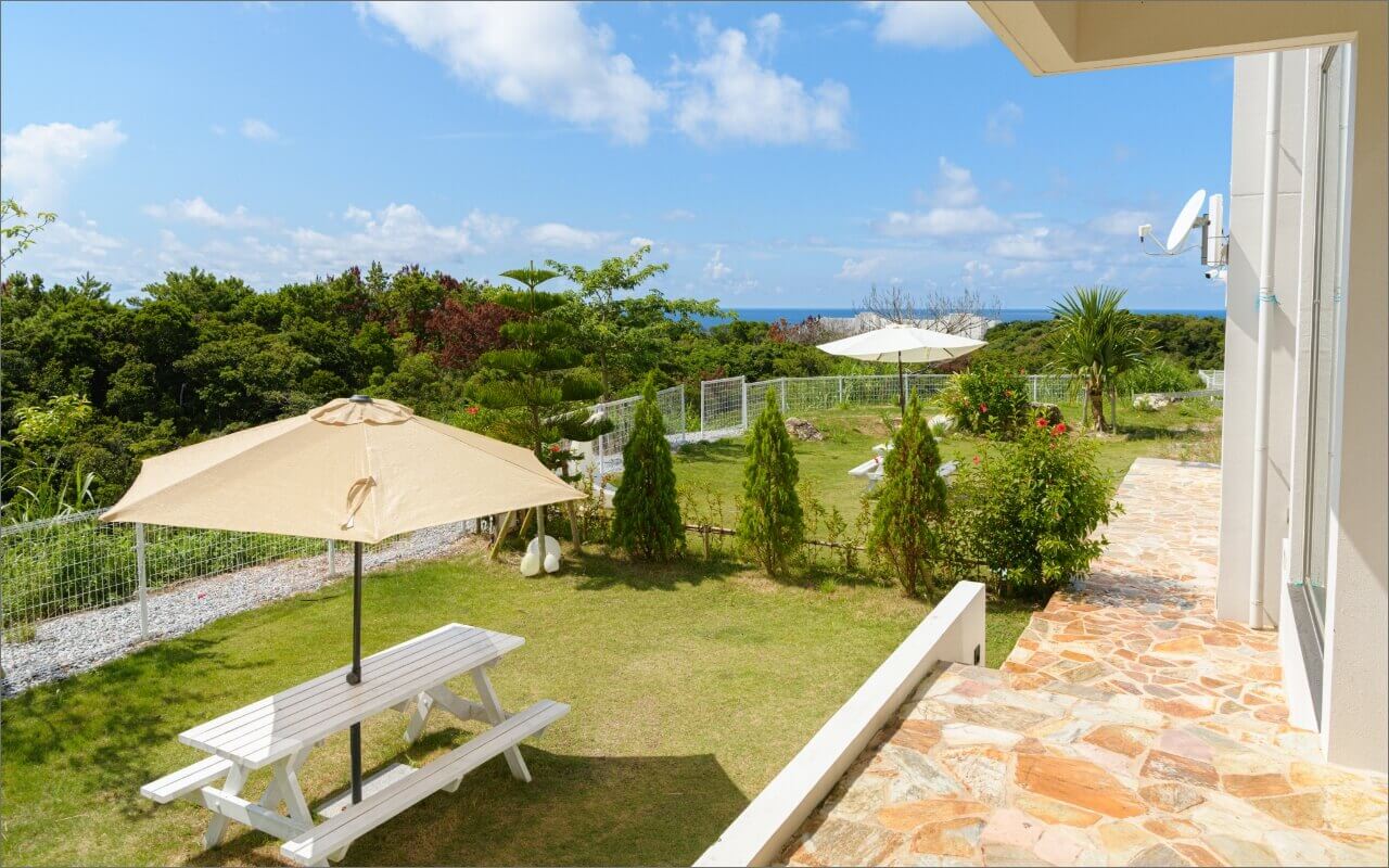 Located on the western coast of the main island of Okinawa, the expansive land features luxurious private spaces with a pair of two-story villas using ample glass with a modern resort style. The hallways are decorated with many pieces of art and were designed to allow in the blue of the ocean and the light of the sun. You can spend your time in comfort here, with a courtyard for BBQs, a wide open living room, and children’s rooms.