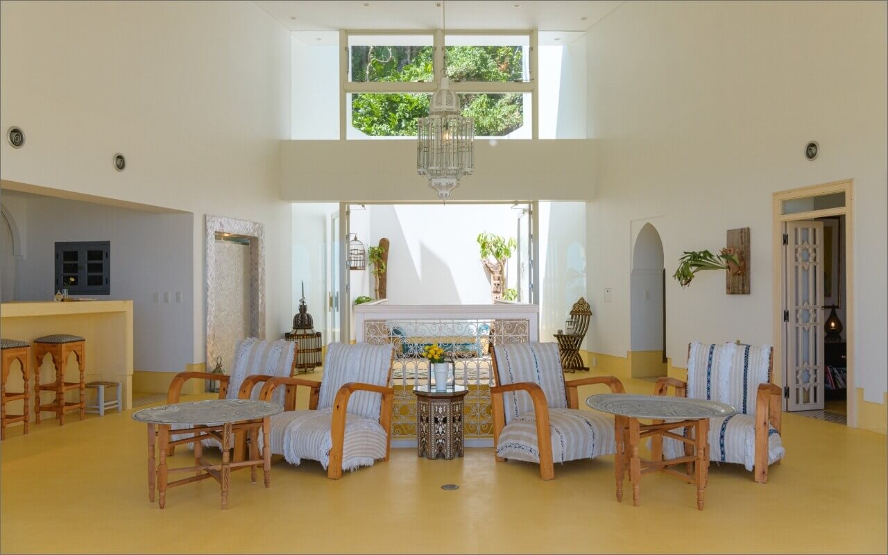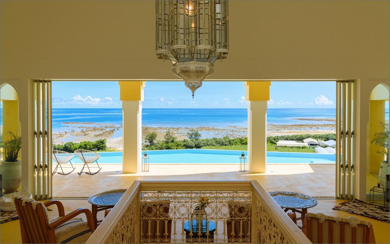 Riad Lamp (a Moroccan residence-style hotel), wrapped in silence and surrounded by sea and forest. The furniture and furnishings were custom made in Morocco, creating a true riad-like space. You can spend your time as you desire in this private space, drinking tea in the courtyard or reading by the poolside. You will feel close to nature as you have your fill of the morning sun, sky full of stars, and the moonlit paths shining on the sea.