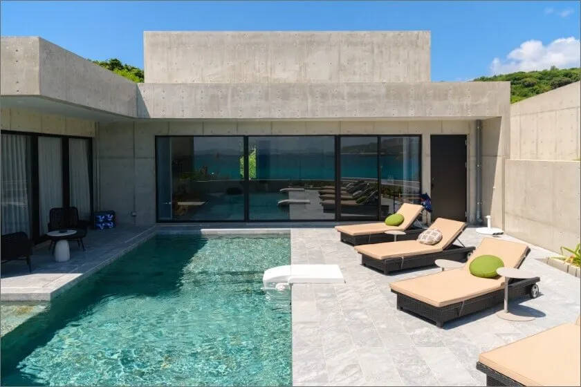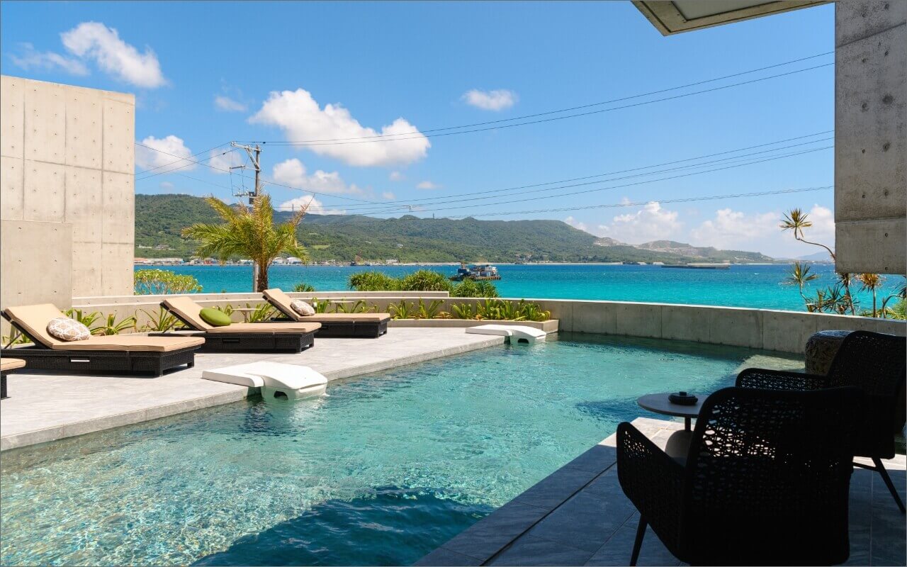 The single villa is limited to one group and is built on Sesoko Island with its expansive unspoiled Okinawan landscapes. Located in front of a small beach, this luxurious space is filled with a sense of openness and the streaming radiant rays of the sun. Feel the ocean breeze and listen to the songs of small birds in the infinity pool that seems to flow into the magnificent sea. With two bedrooms, you can spend your special time with family, friends, and those you care for.