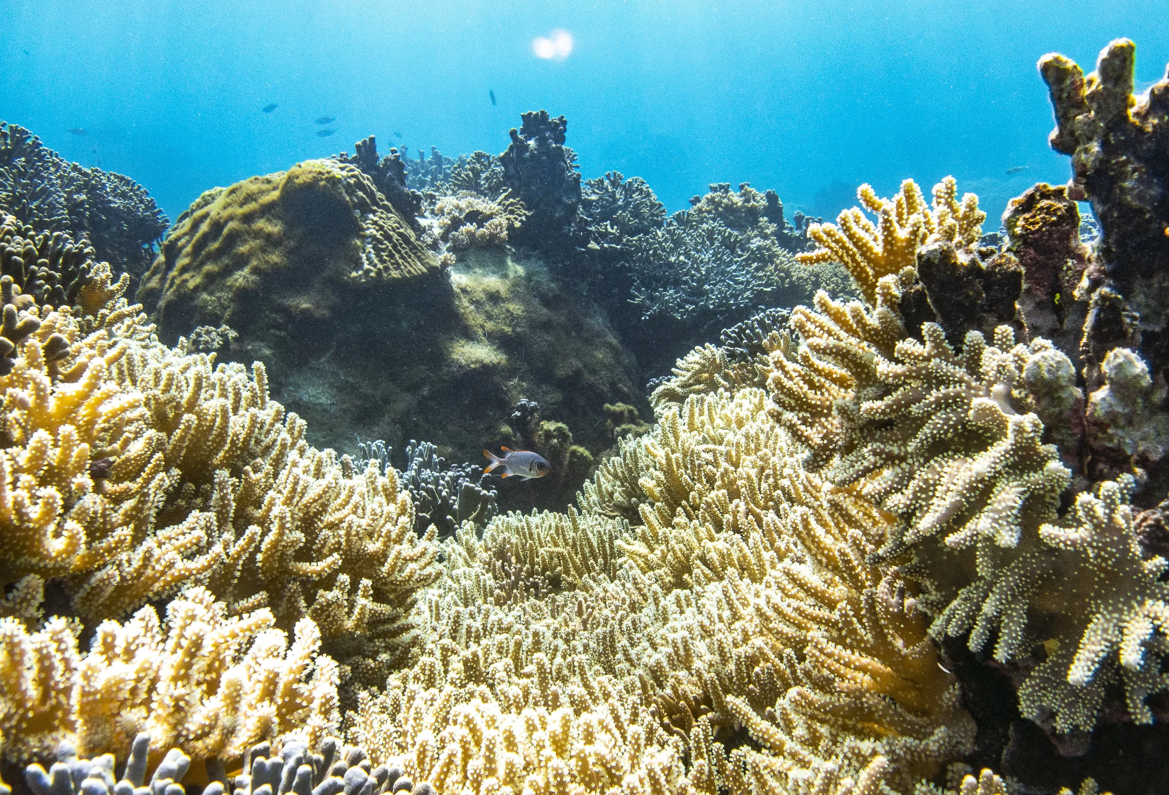 There are no rivers or mountain ranges on the islands, making for stunningly clear coastal waters highlighted by vivid gradients of blue, commonly referred to as Miyako Blue. White sand beaches are numerous and include the iconic Yonaha Maehama beach, considered the most beautiful beach Japan. Surrounded by coral, the islands are also home to Yabiji the largest coral reef in the nation, encompassing over 100 separate coral reefs and covering an area of 17 by 6.5 kilometers. Yabiji hosts a wide variety of coral and is dense with sea life, and the reefs are shallow, which makes for excellent snorkeling.